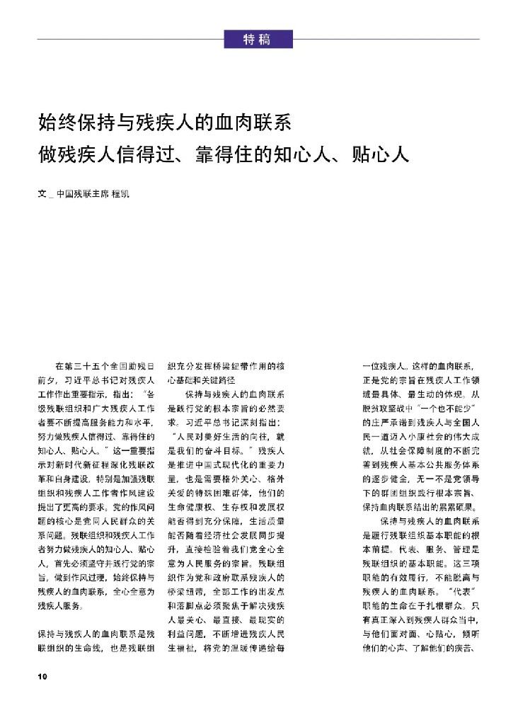 保持与残疾人的血肉联系是残联组织的生命线,也是残联组织充分发挥桥梁纽带作用的核心基础和关键路径