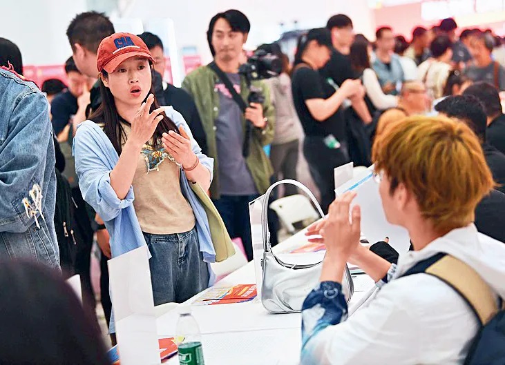 ▲就业是最大的民生。2025年全国助残日期间,残疾人系列招聘会在北京举办,千人参与,百岗精准匹配,为残疾人提供多元化就业选择。图为听力残疾青年用手语向招聘方咨询。(图_CFP)
