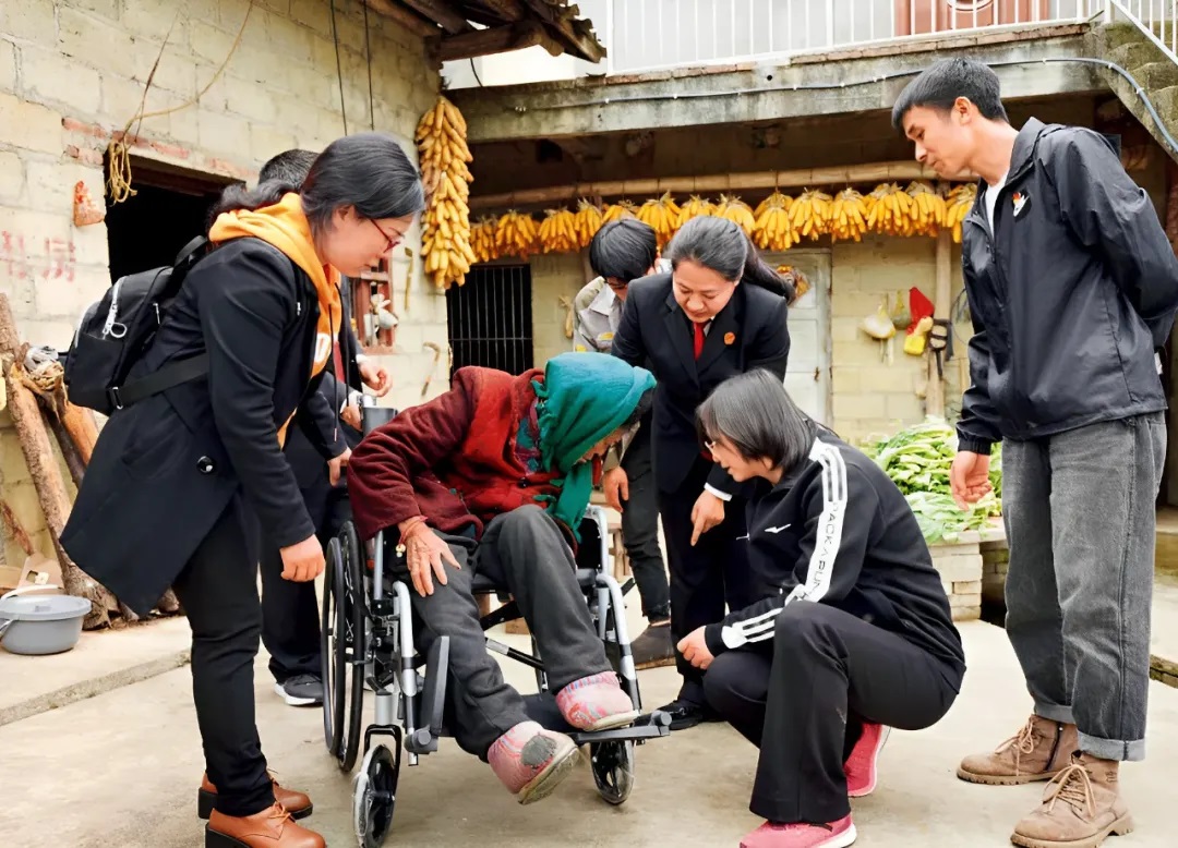 ▲云南省永善县残联以“十万干部下基层,下沉一线办实事”实践活动为抓手,制定实事清单,采取“三送”上门为残疾人群众办实事解难题,打通服务残疾人“最后一公里”。图为永善县残联送辅具上门,解决残疾人出行难问题。(图片由永善县残联提供)