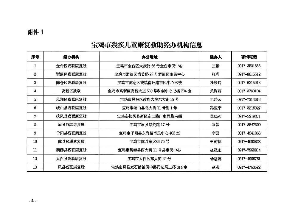 附件:1.宝鸡市残疾儿童康复救助经办机构信息